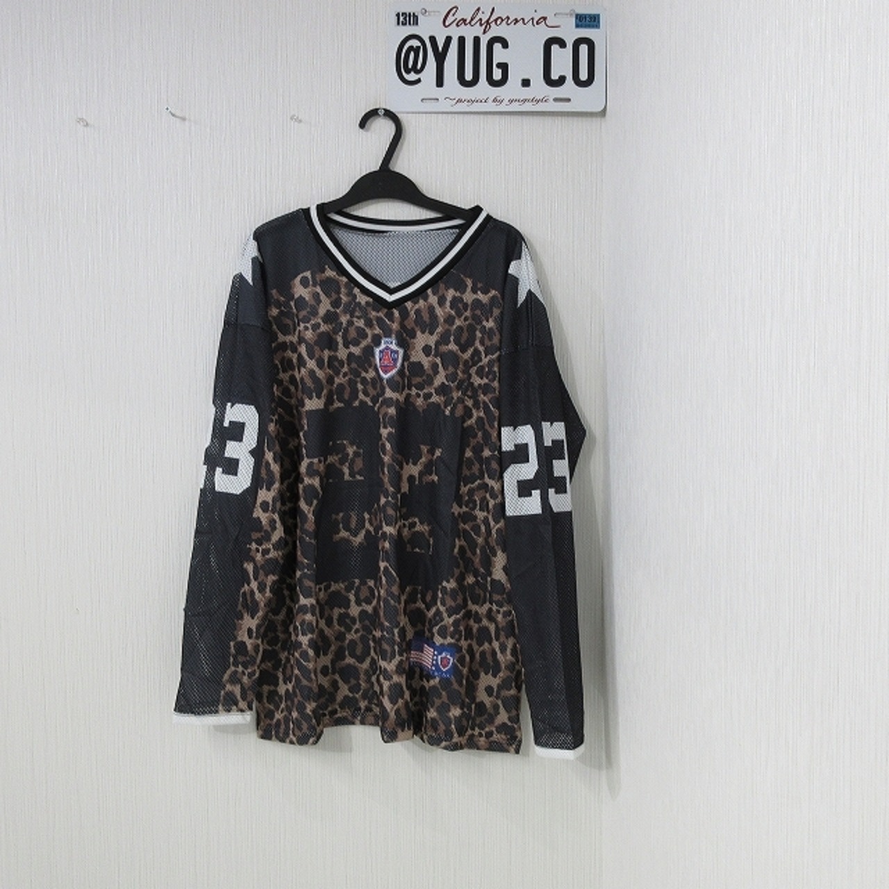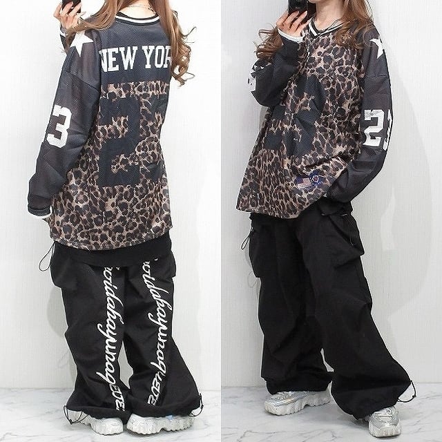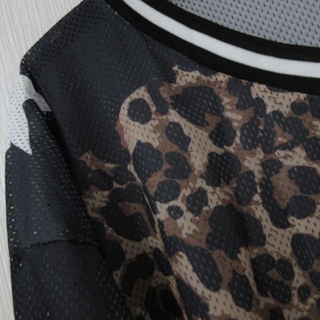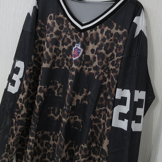 レオパ 豹柄 Vネック 配色切替 Noロゴ バクプリ ロンT
