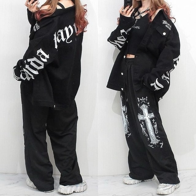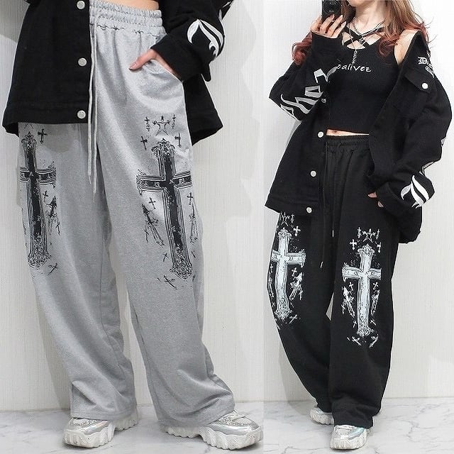 タトゥ クロス十字架 Wide ワイドスウェットパンツ