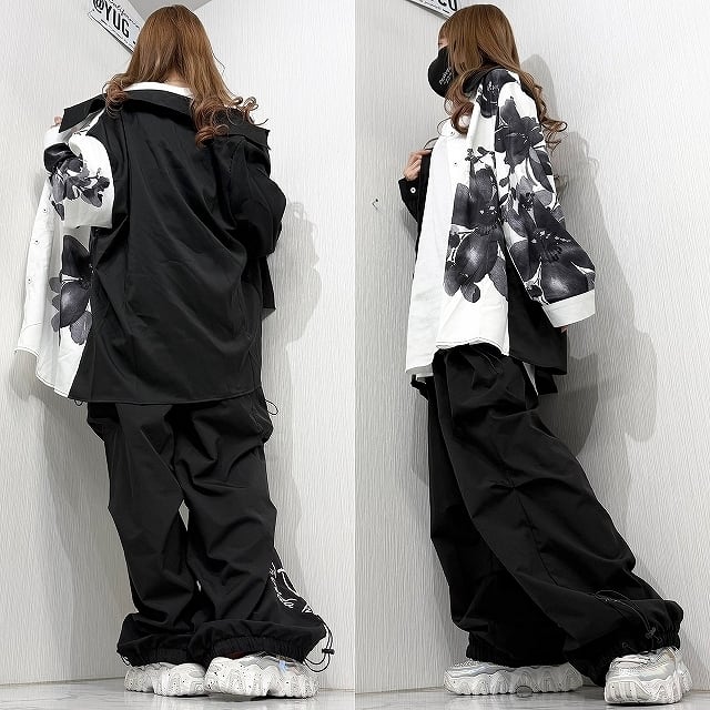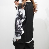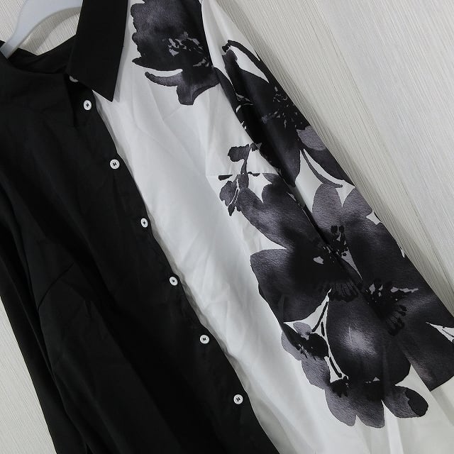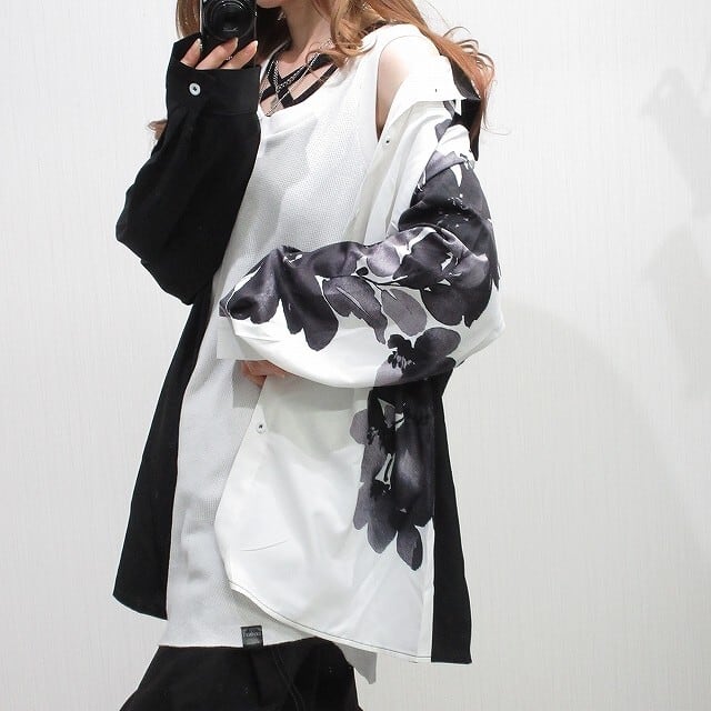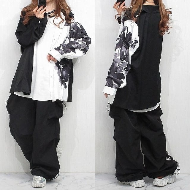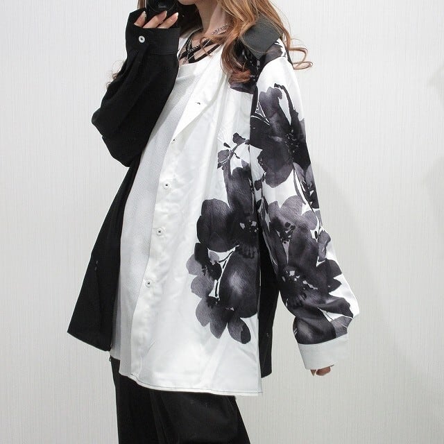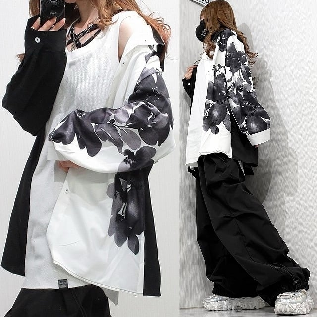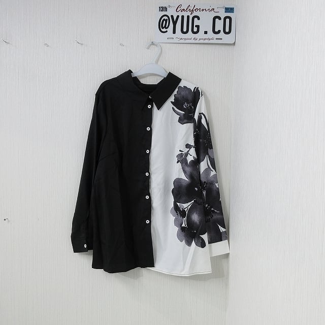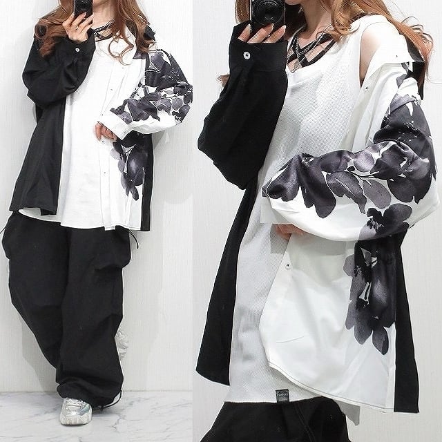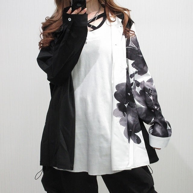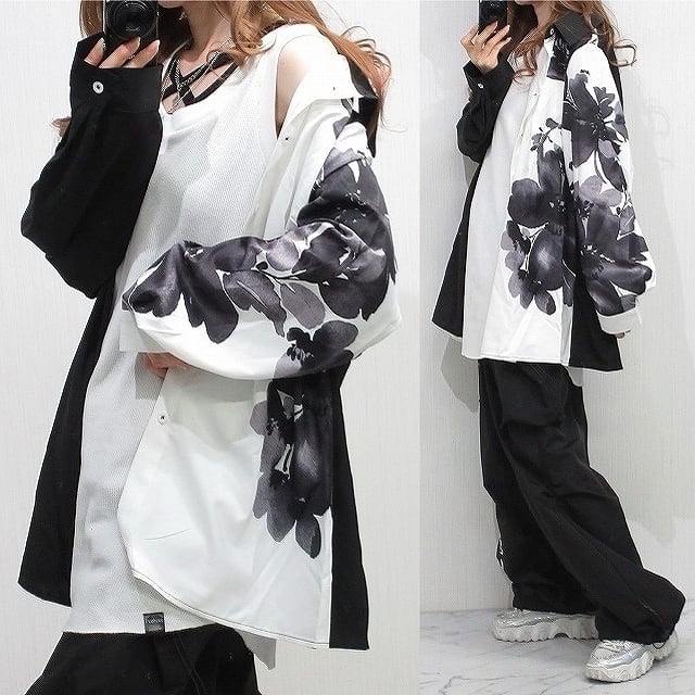 花柄 モノトーン Flower 配色切替 BIGシルエット オーバーシャツ