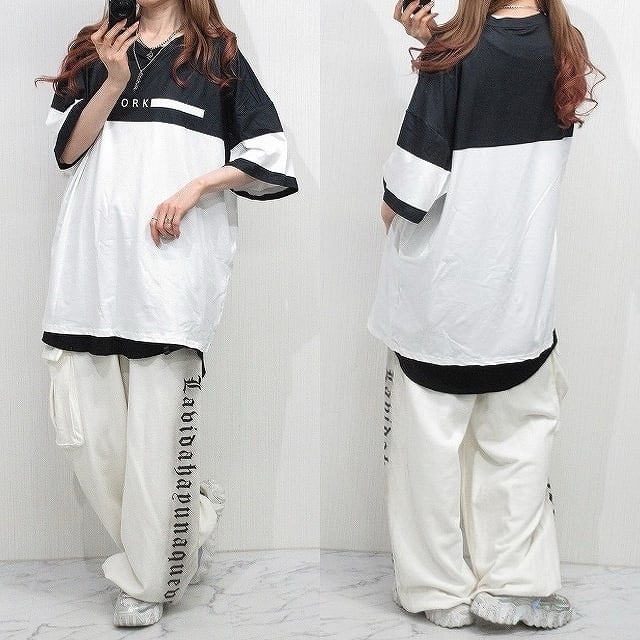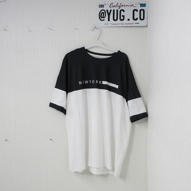 NYロゴ バイカラー 配色切替 オーバー Tシャツ