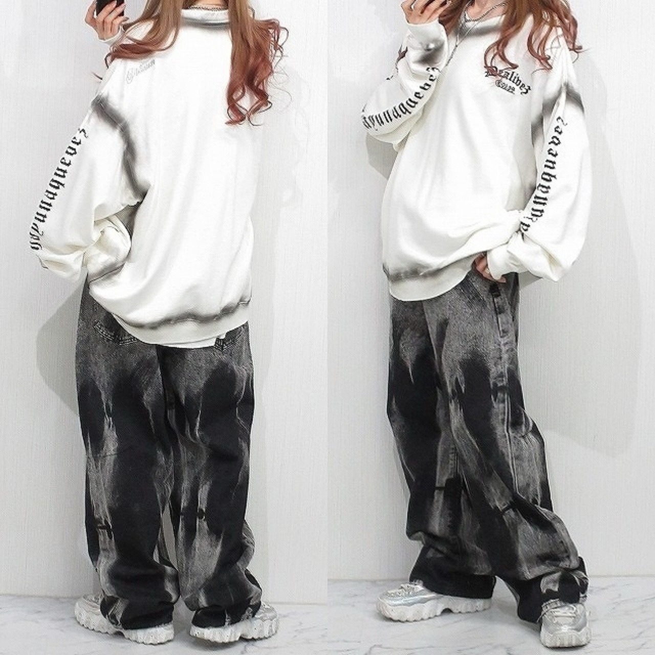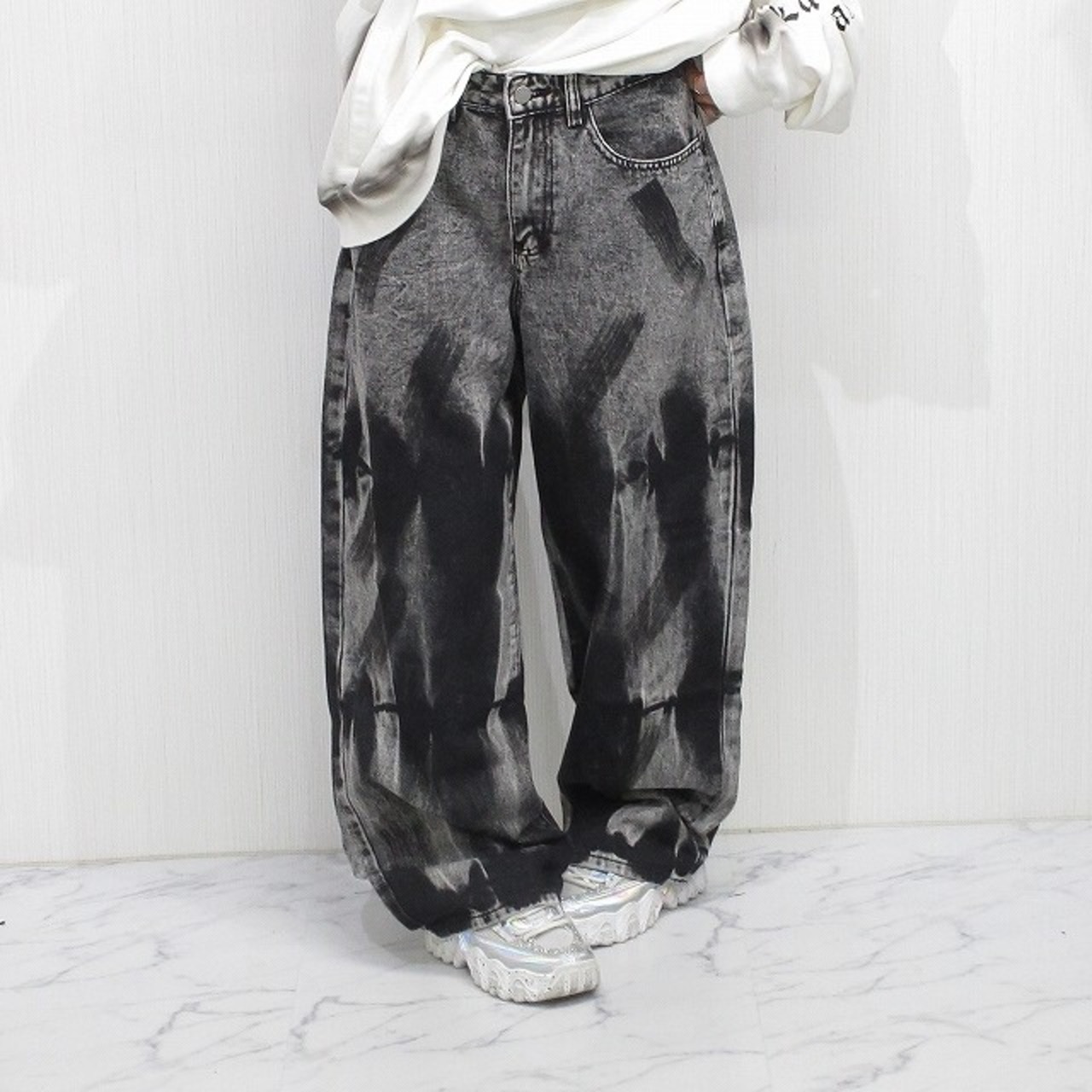 ※モデルXSサイズ着用にて撮影(モデルはXSでもダボダボですが腰で落ちてこないです)