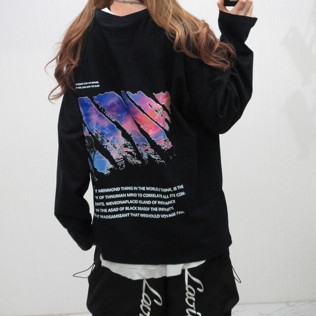 ストリート Back レインボー ロゴ バクプリ ロンT 綿100%