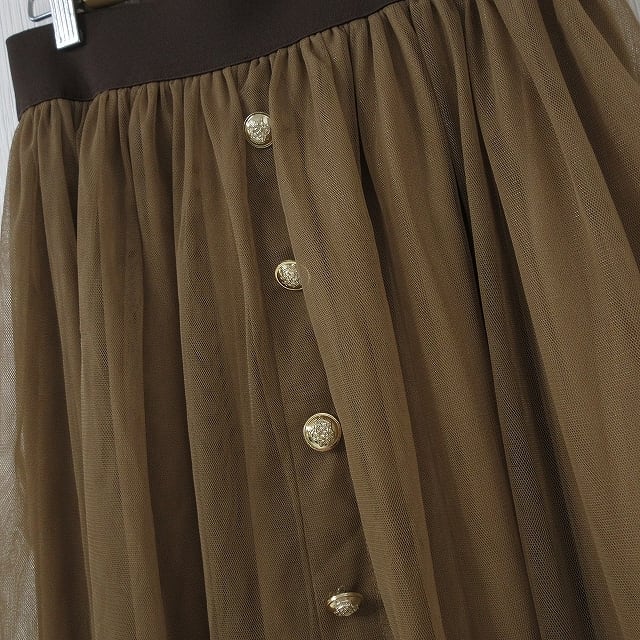 彫刻釦 オーガンジー レースメッシュ 裏地付 ボリュームフレア Aライン マキシスカート ロングスカート フレアスカート