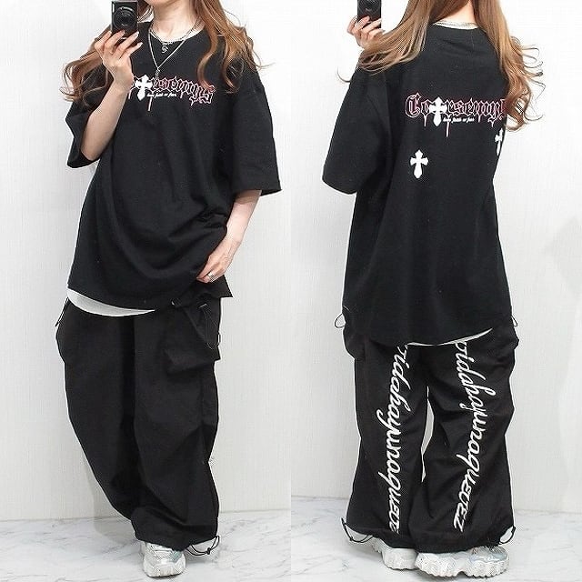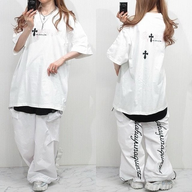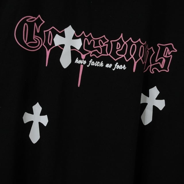 クロス十字架&pinkロゴデザインが目を惹くストリート感溢れるTシャツ⭐︎