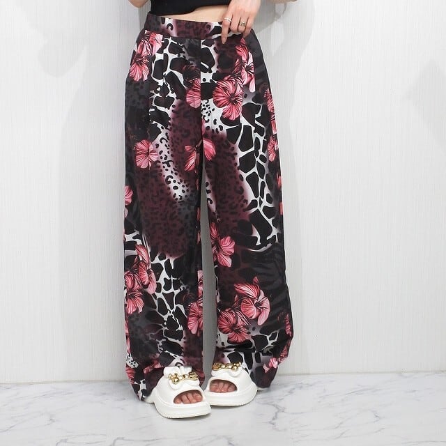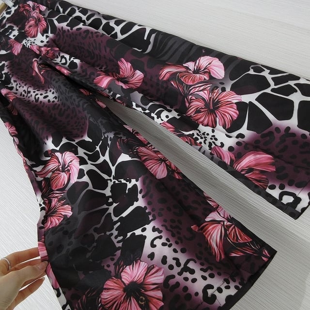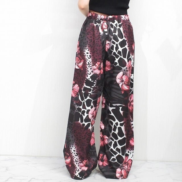 レオパ柄&花柄 flower 上品 フレアボトム とろみパンツ