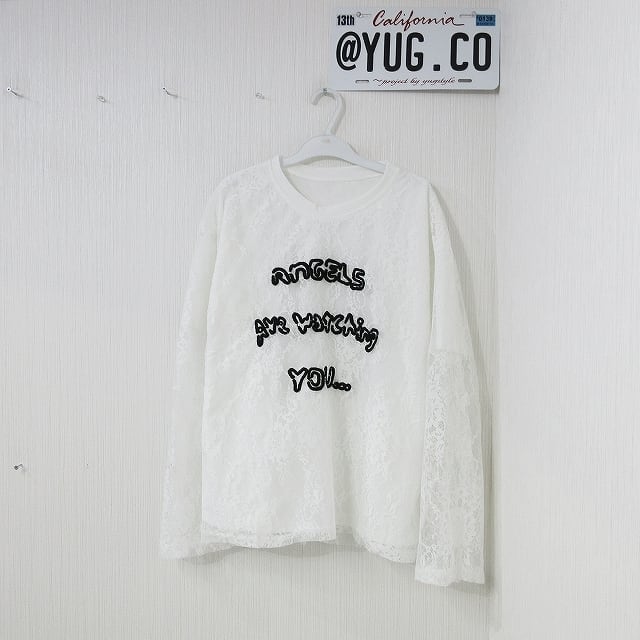 ALLレース Frontロゴ刺繍 Tシャツ一体型 レースロンT t642419