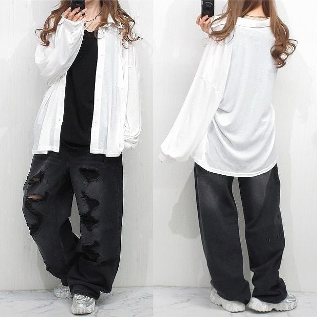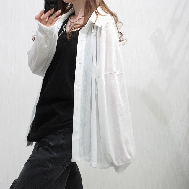 シンプル 無地 とろみ 透け感 シアーシャツ オーバーシャツ s642009