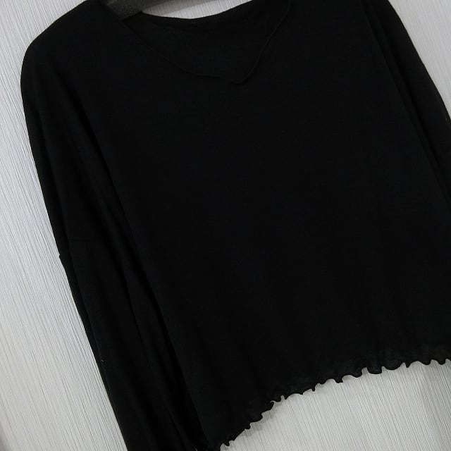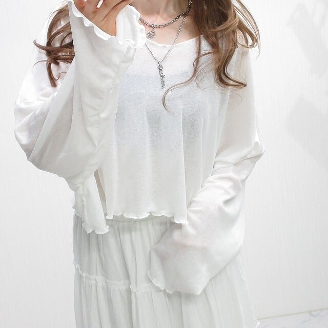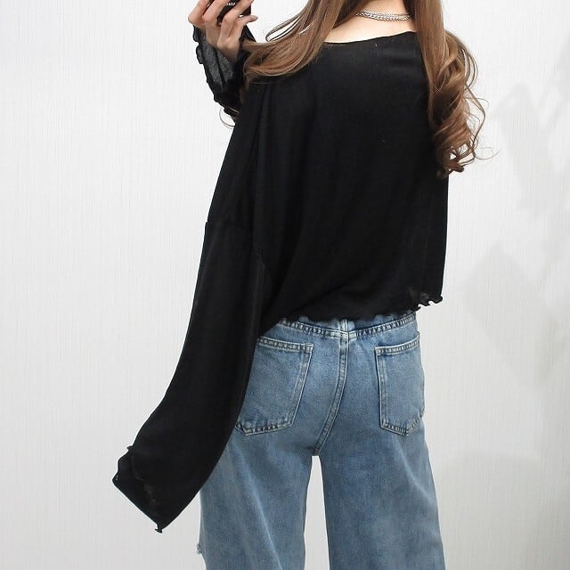フリル シンプル 無地 とろみ 透け感 シアーチュニック ショート丈 ロンT s642005
