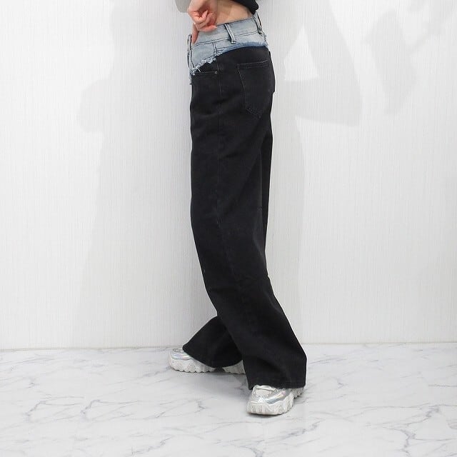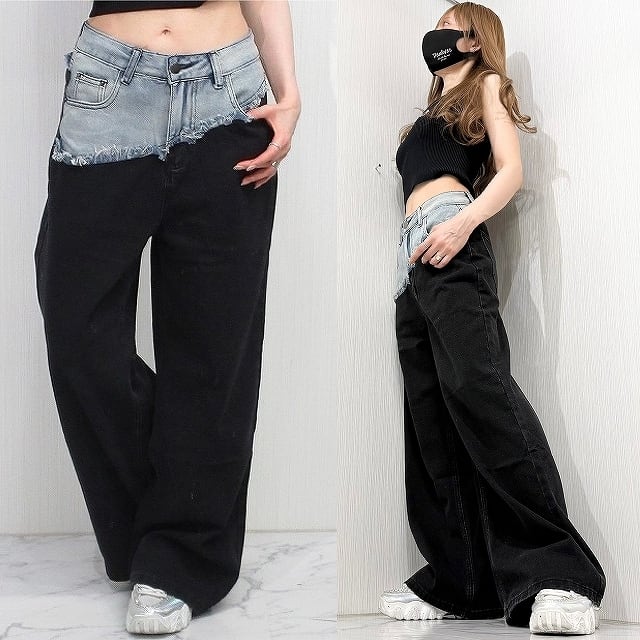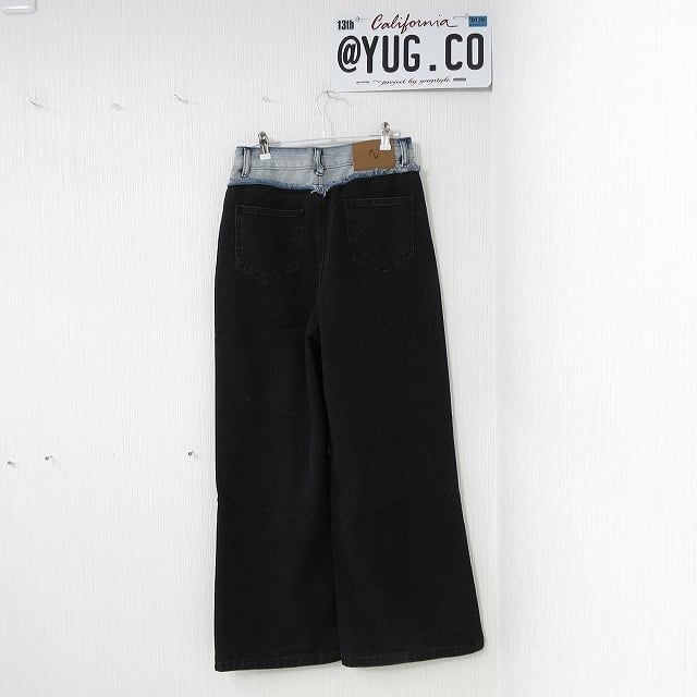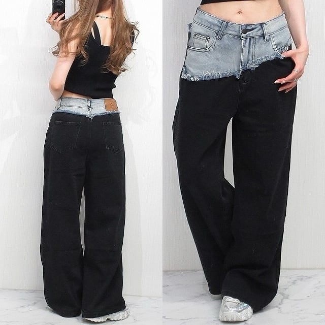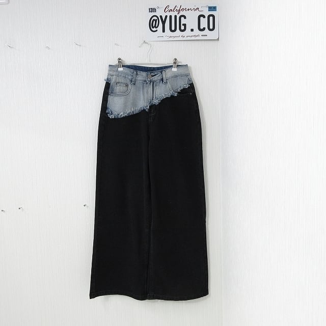 パッチワーク切替デニム切替デニムのビンテージ感溢れるデザインが目を惹くワイドデニムパンツ!