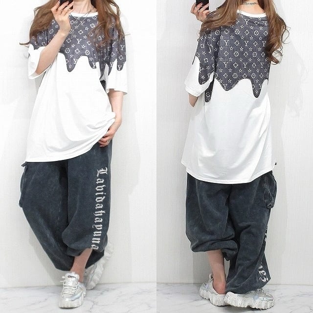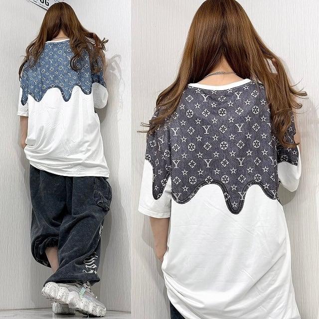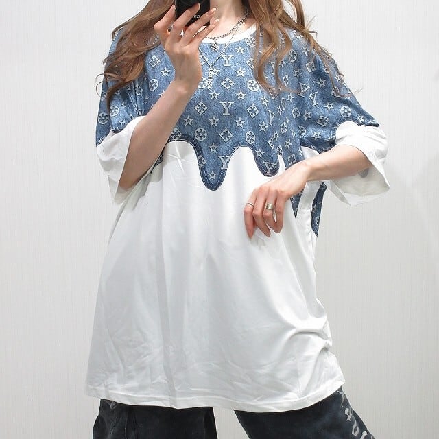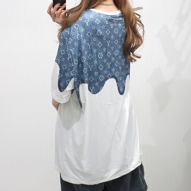 ドロドロアイコン デニム調 ドッキング BIG Tシャツ s642709