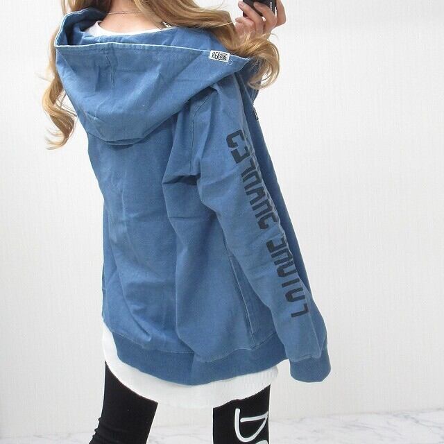デニムパーカー 袖ロゴ BIGフード ユニセックス サックス