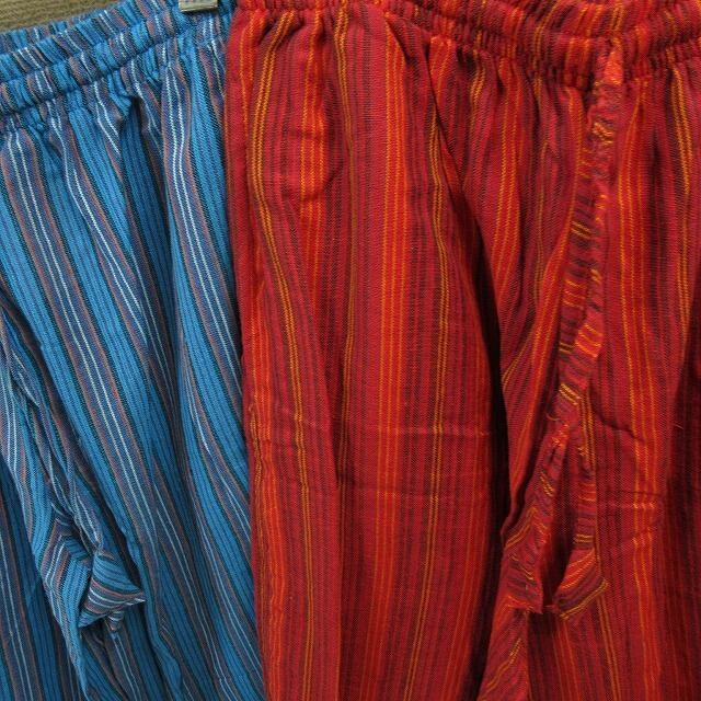 エスニック マルチストライプ コットンWideパンツ 南国リゾート ユニセックス グリーン