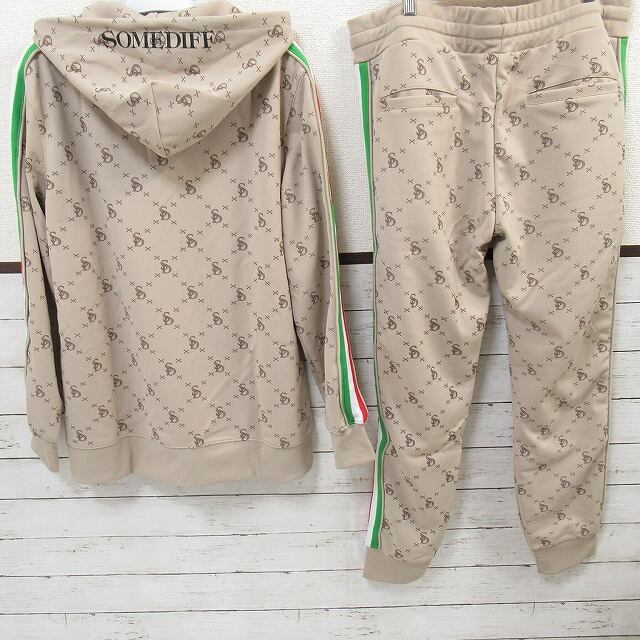 SET UP エンブレム ロゴ総柄 パーカー&ジョガーパンツ 上下セットアップ