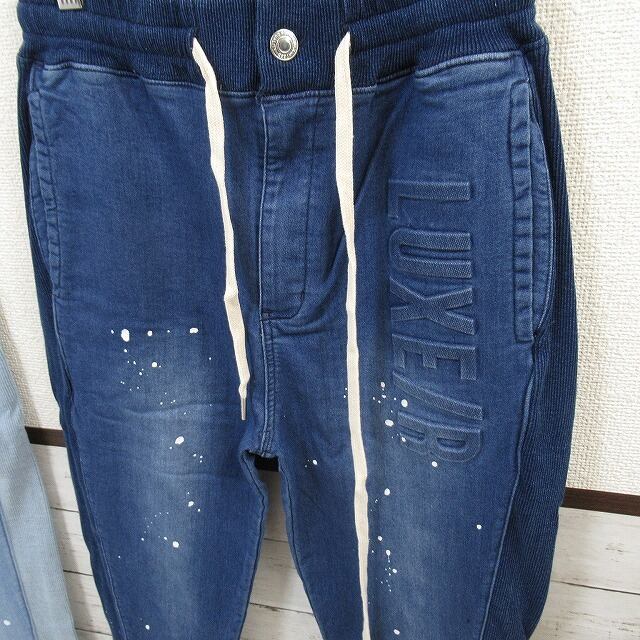 【2 size】エンボスロゴ カットデニム ジョガーパンツ Sideリブ切替ペイントデニム インディゴ