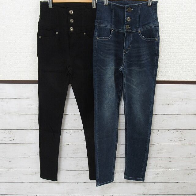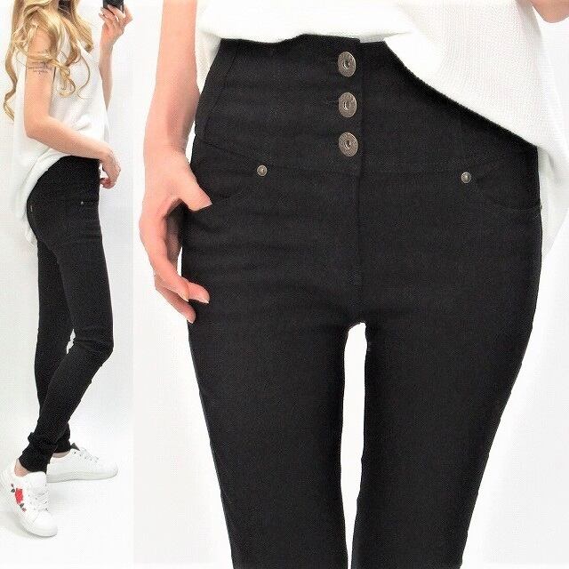 【3size】Front3連ボタン ハイウエスト 美脚小尻◎ スーパーストレッチ スキニーパンツ ブラック