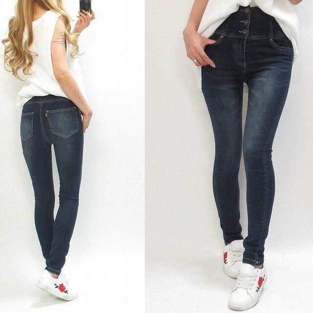 【3size】Front3連ボタン ハイウエスト 美脚小尻◎ スーパーストレッチ スキニーデニム