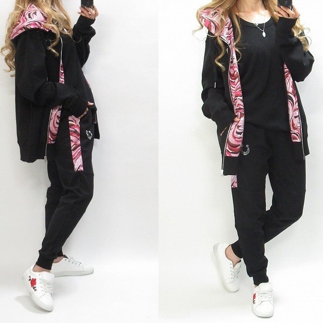 【SET UP】マーブル柄 プッチ柄 ZIPパーカー&ジョガーパンツ 上下セットアップ 2点セット ブラック