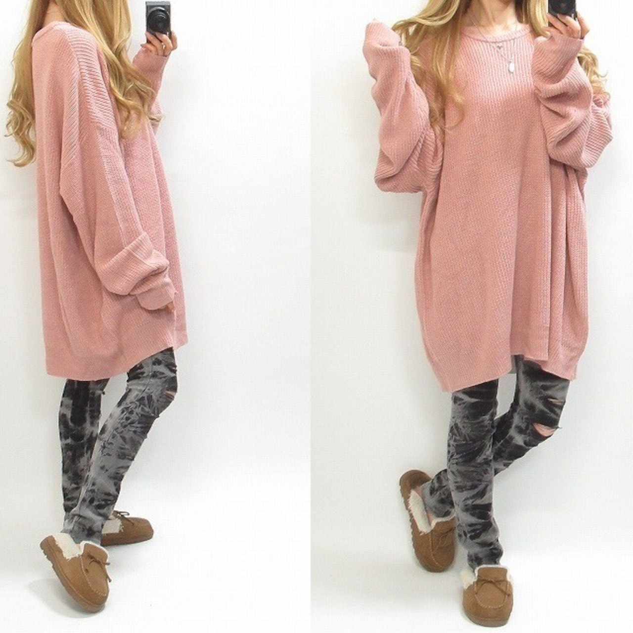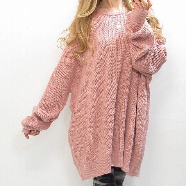 シンプル 無地 オーバーニット ざっくりローゲージ ニット BIGシルエット ピンク