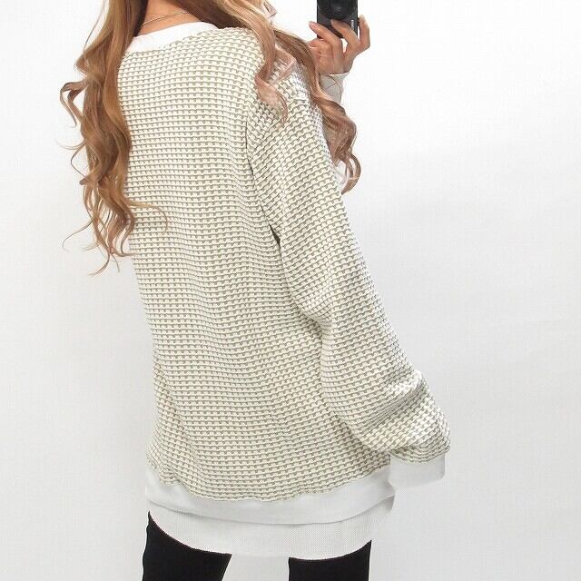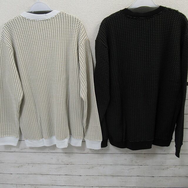 サーマル ワッフル トレーナー プルオーバー Sideポケット付き アイボリーベージュ