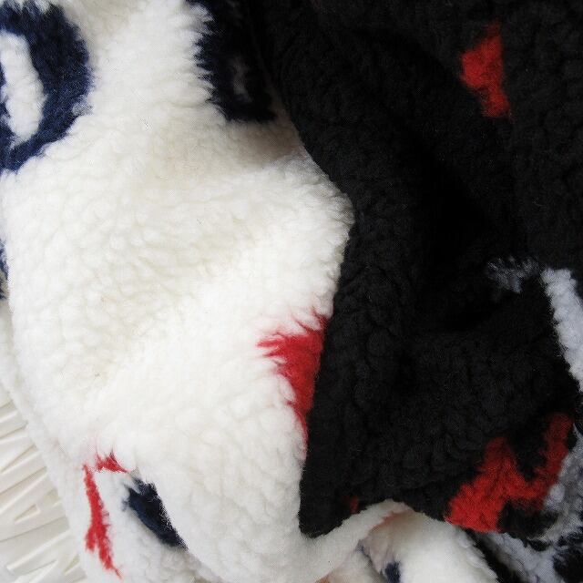 【リバーシブル】ダイバーボンディング 総柄ボア 2WAY エンボスロゴ 肉厚ボア パーカー ボアブルゾン ブラック