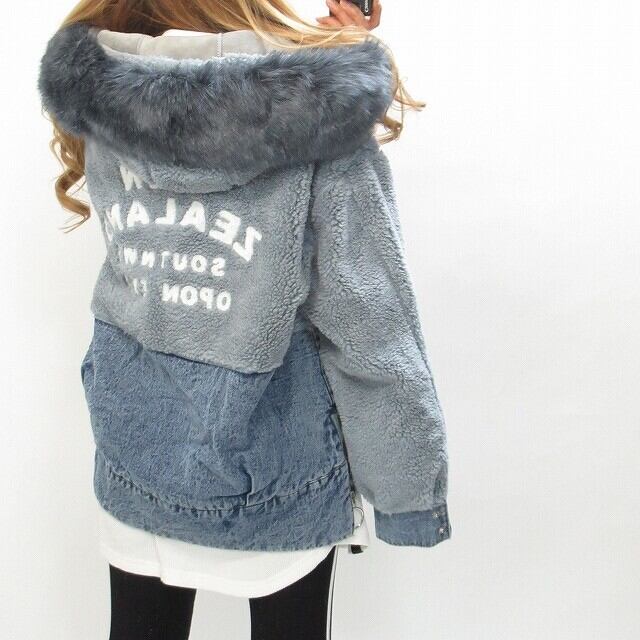 【限定入荷】パッチワーク サガラ刺繍 デニムジャケット ボアジャケット デニム切替ボア 裏ムートンベロア オーバーサイズ