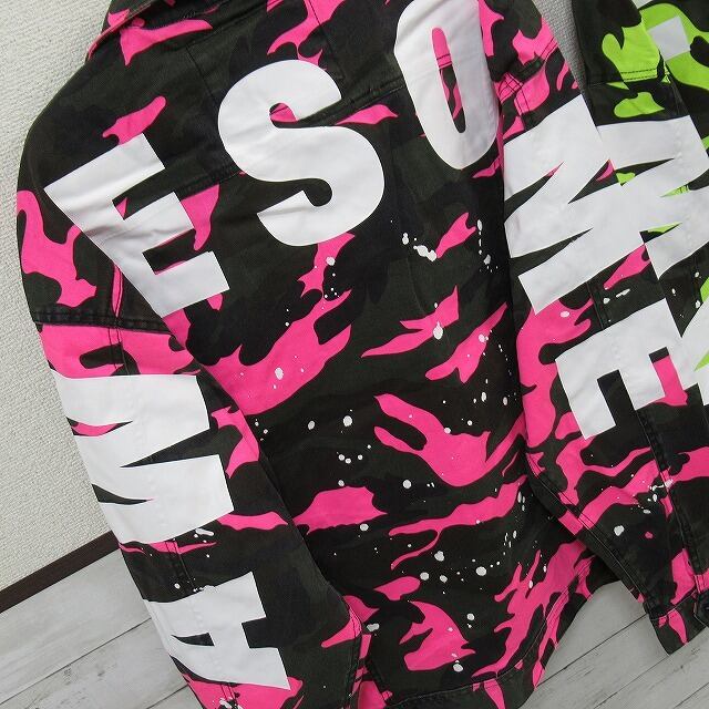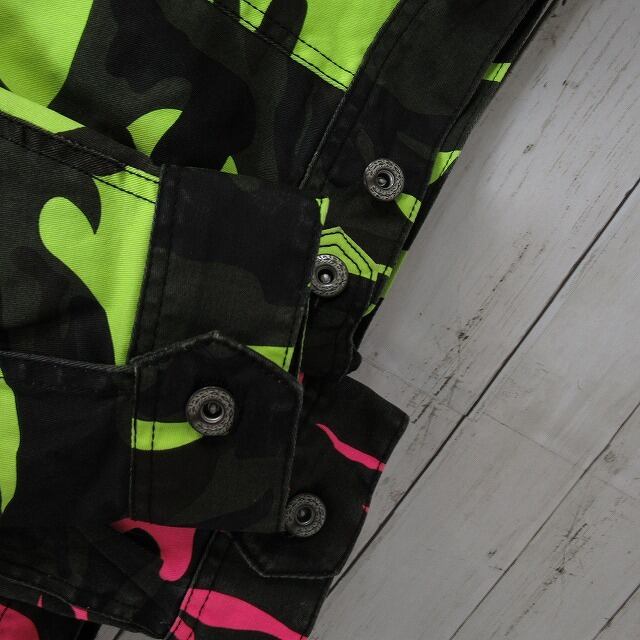 カモフラ迷彩 ネオンピンクMIX デニムジャケット Gジャン オーバーサイズ