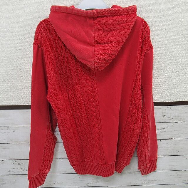 ラスト1点 再入荷なし‼︎ ビンテージ調パーカー ケーブル編み切替袖 綿100% デニム胸ポケット レッド