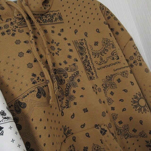 【上下セットアップ】【2サイズ】ペイズリー柄 ストリート BIGパーカー&Wideジョガーパンツ オーバーサイズ ベージュ