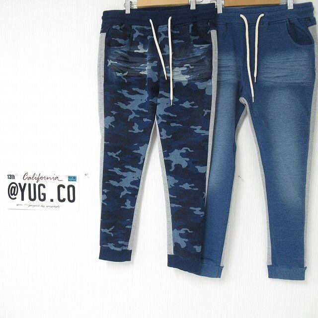 カットデニム スウェット切替デニム ジョガーパンツ デニムスウェット