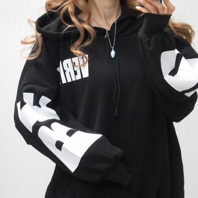 バックロゴ 袖ロゴ パーカー オーバーサイズ ブラック
