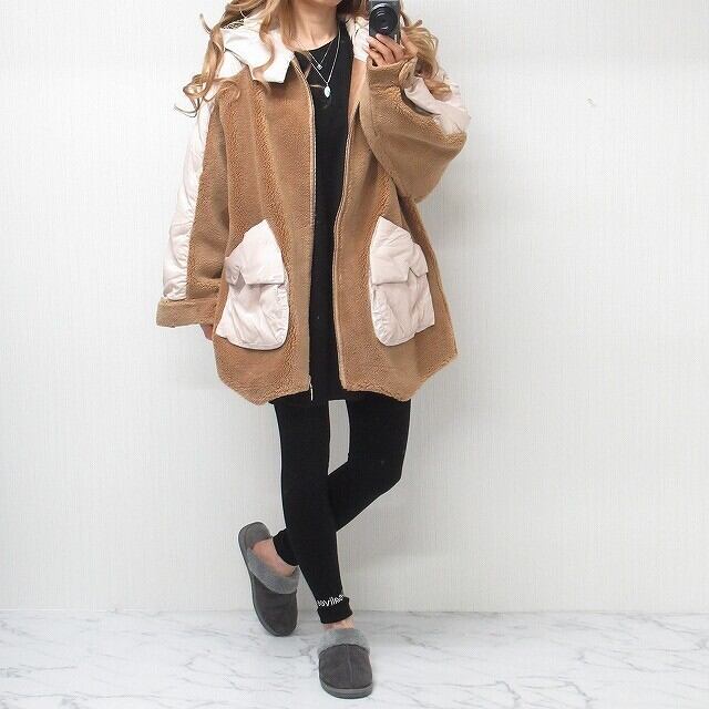 【限定入荷】パッチワーク ムートン×ダウン×ボア ボアジャケット あったか 裏ムートン オーバーサイズ