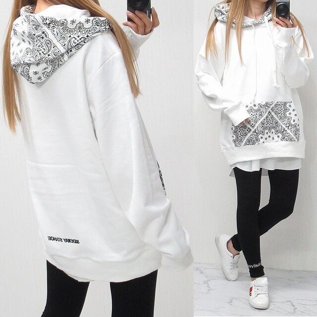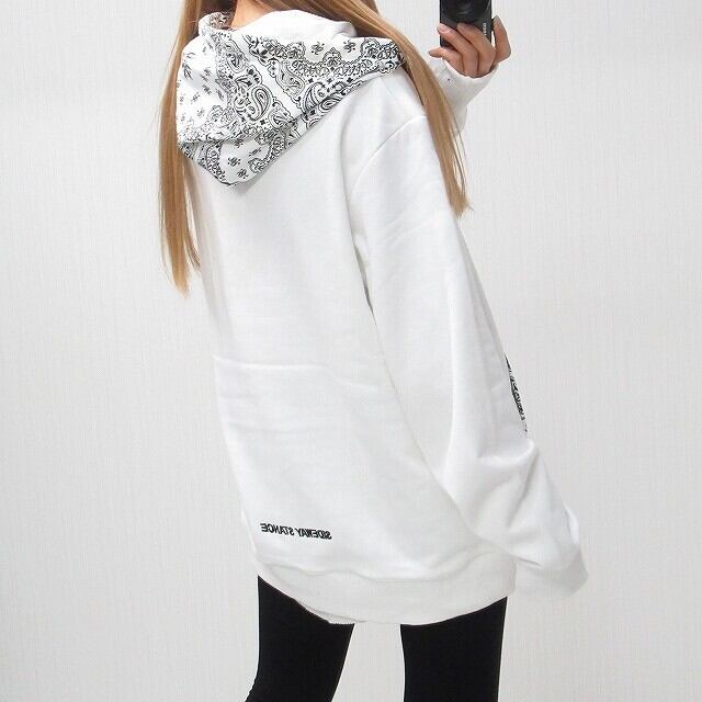 ペイズリー柄 切替 ストリート BIGパーカー オーバーサイズ ホワイト