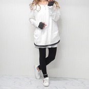 裾&袖&デコルテが重ね着レイヤードになっているデザインなので1枚でコーデ重ね着風☆
