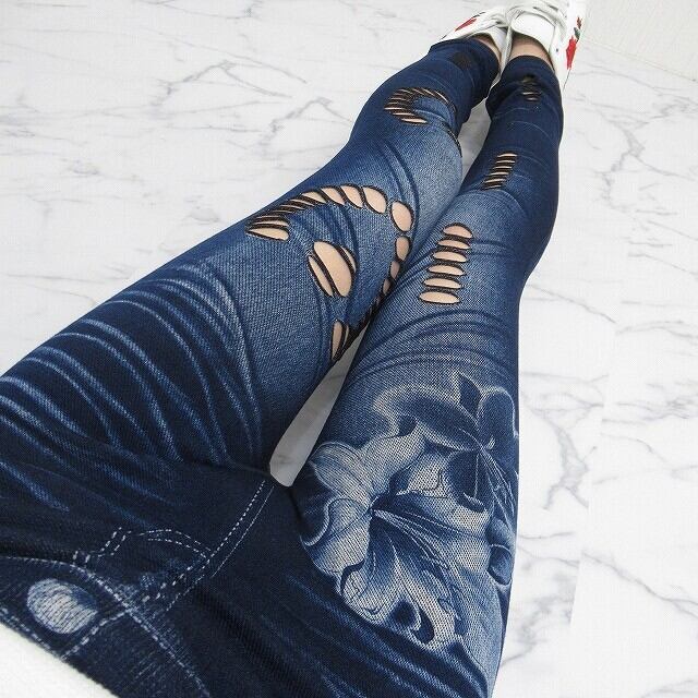 ダメージ デニム ハートモチーフ lily ビンテージ 美脚ストレッチ レギンス