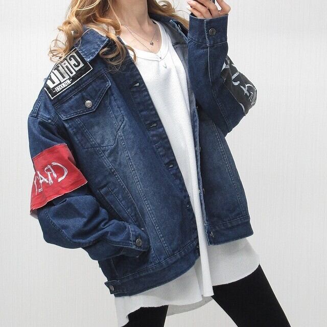 ストリート バックロゴ 貼付 布ワッペン デニムジャケット Gジャン ジャケット デニム