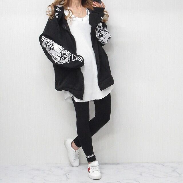 インポート BIGパーカー タトゥ BIGフード 星柄 袖プリント バクプリ