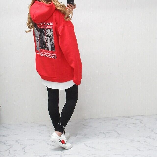 ストリート バックPhoto貼付け BIGパーカー オーバーサイズ レッド