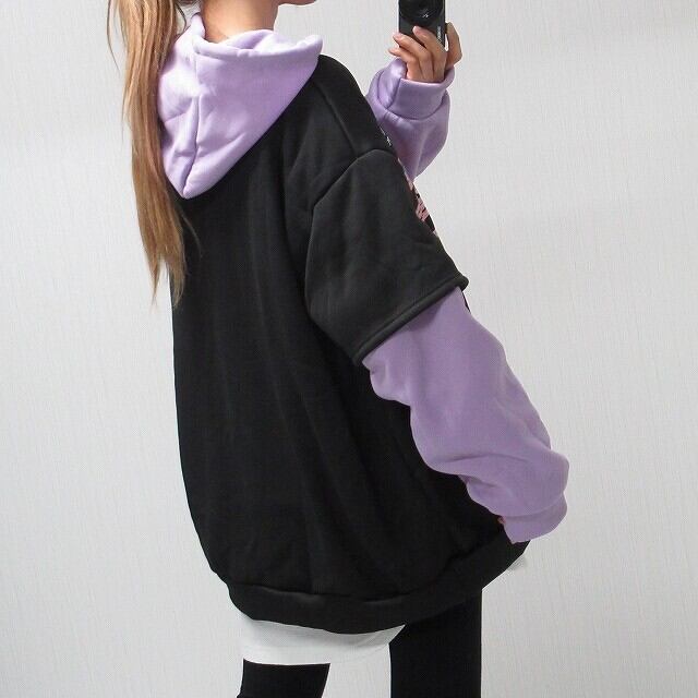 ストリート パーカー 一体型 袖切替 レイヤード BIGパーカー