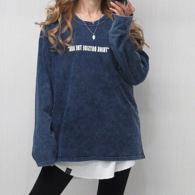 デニムロンT 綿100% バックALLロゴ ロンT インディゴ