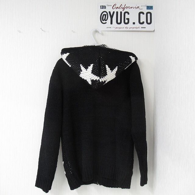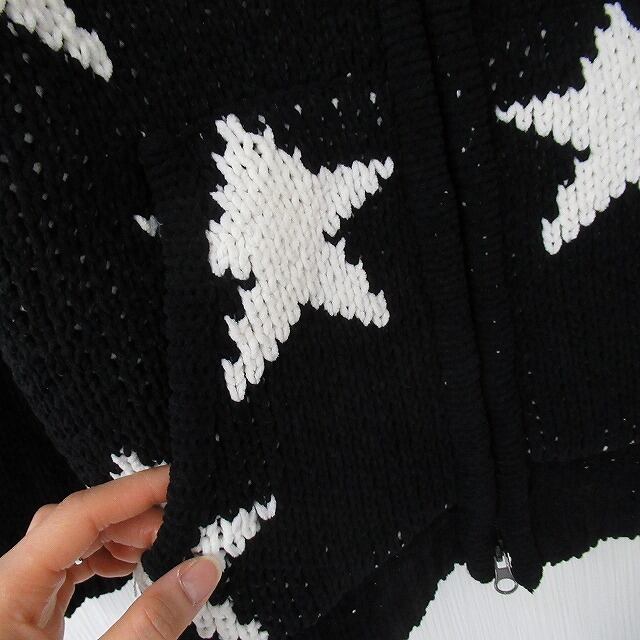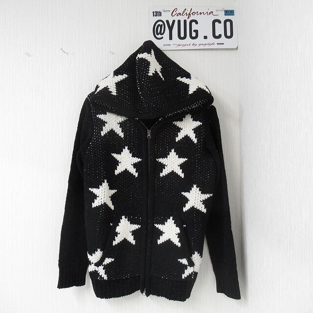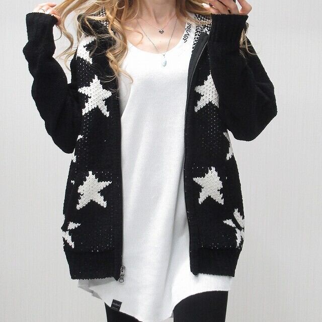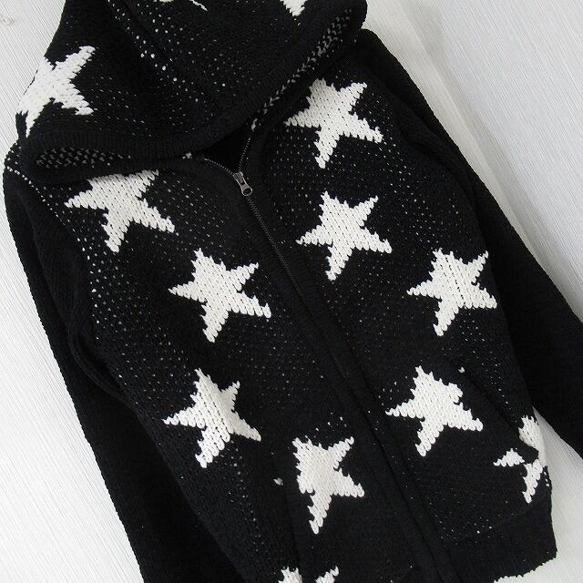 BIGフード星柄 バイカラー モールヤーン パーカー ブラック