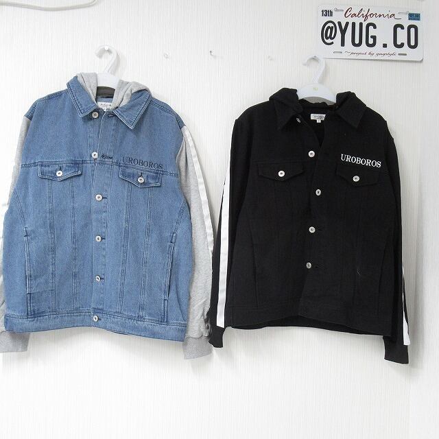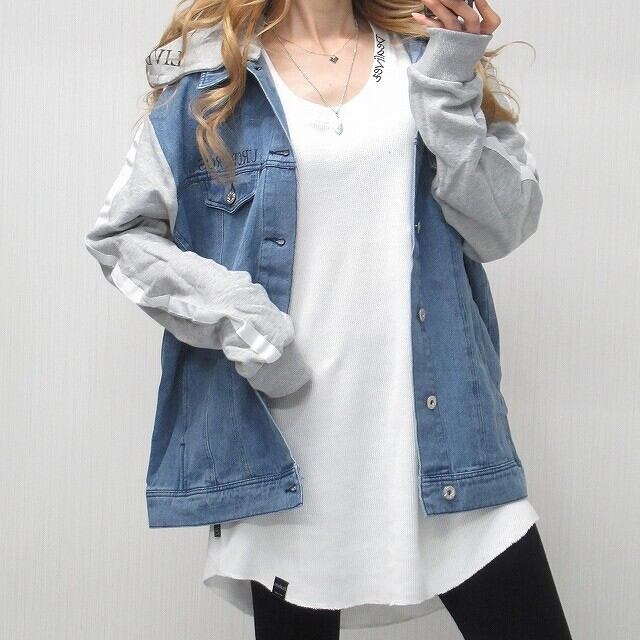 ストリート スウェット切替 デニムジャケット BIGフードロゴ Gジャン ジャケット デニム ブルー