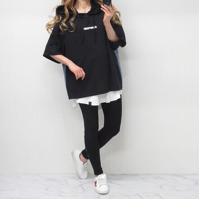 デニム切替スウェットのパッチワークデザインがオシャレ感抜群♪♪