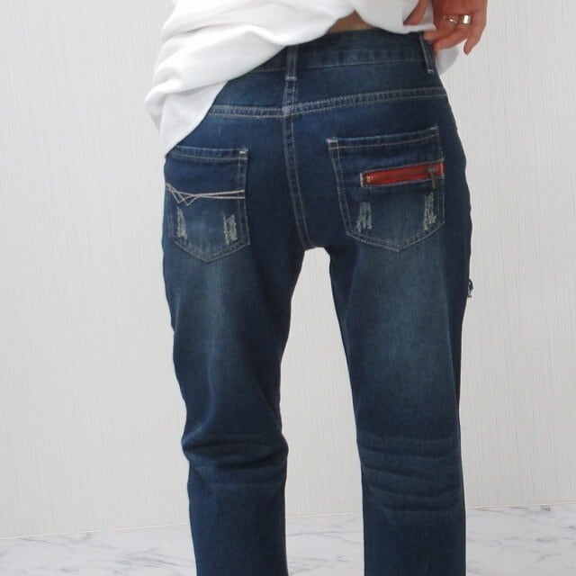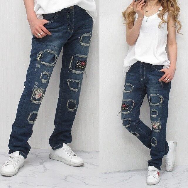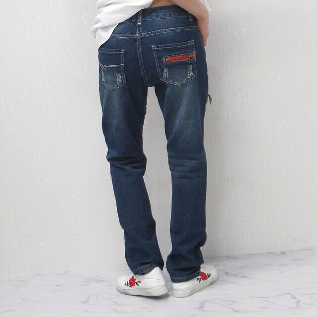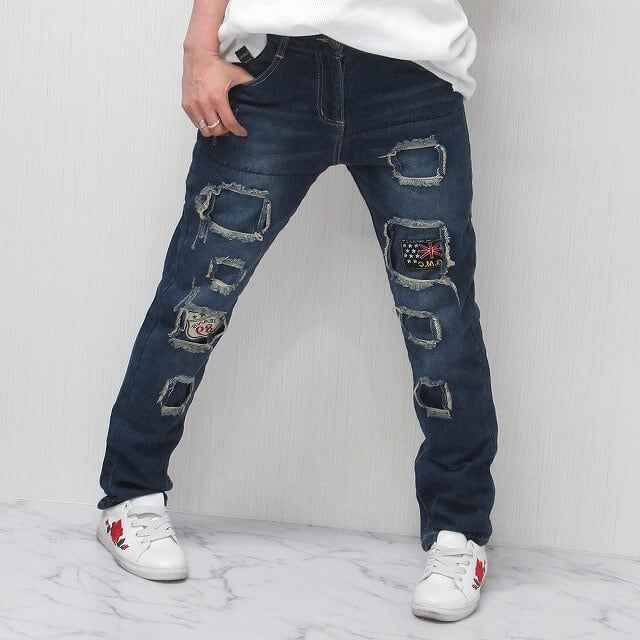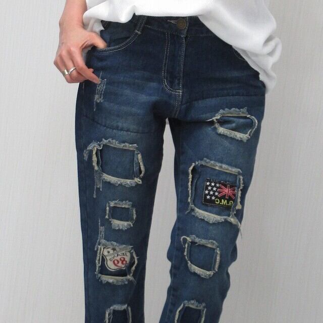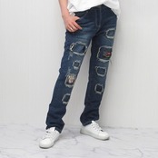 【2サイズ】ダメージ ワッペン刺繍 ビンテージ BOYSデニム デニムパンツ