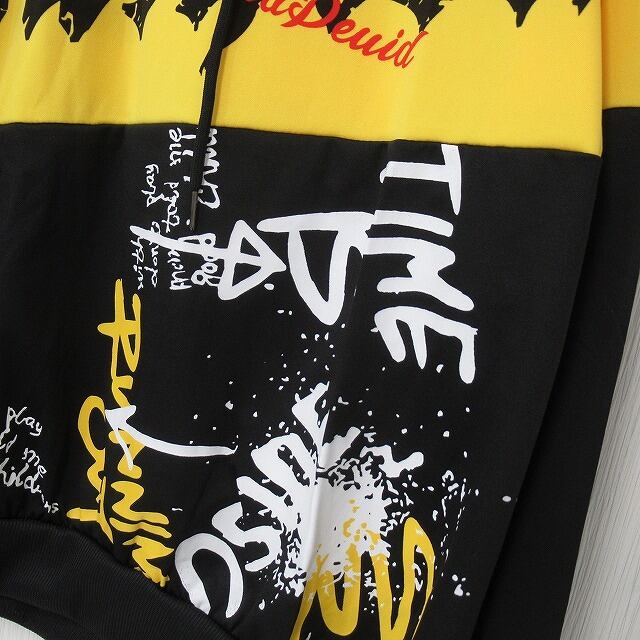 【SET UP】ストリート デコレーション パーカー&パンツ 上下セットアップ インポート イエロー