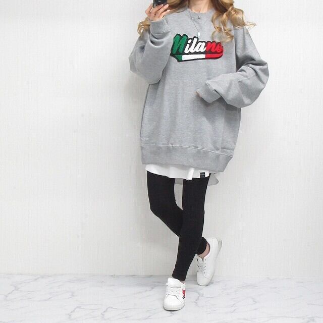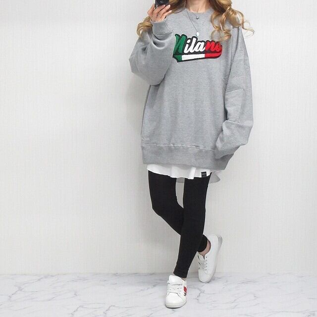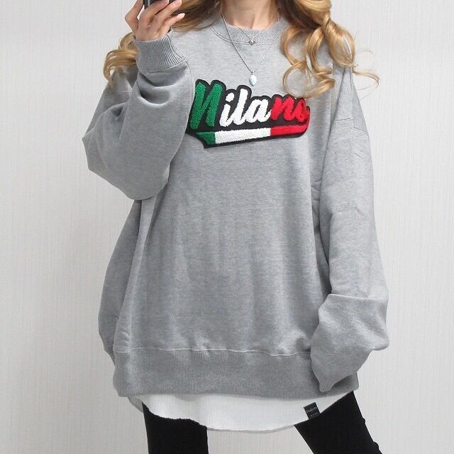 サガラ刺繍 Milano ロゴ BIGトレーナー オーバーサイズ グレー