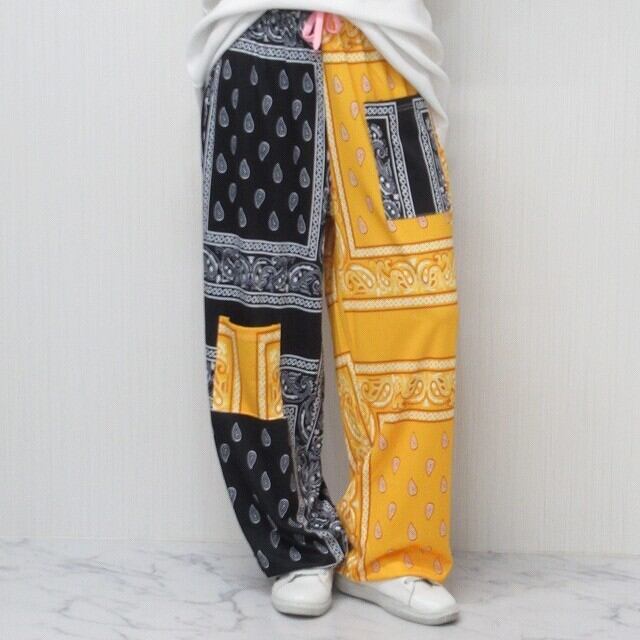 ペイズリー柄 配色切替 カジュアルパンツ BOYSパンツ ストリート インポート