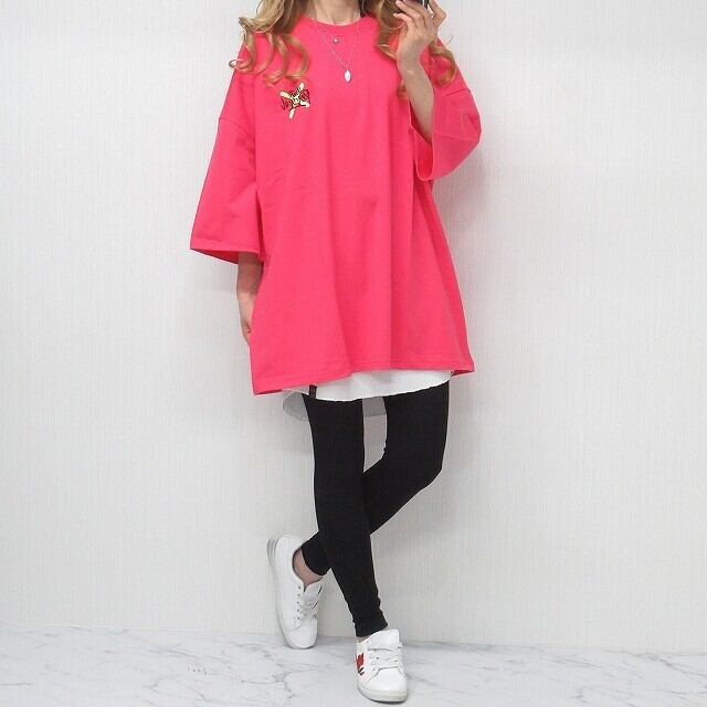 ストリート 背中一面ロゴ 綿100% BIGTシャツ ユニセックス ピンク