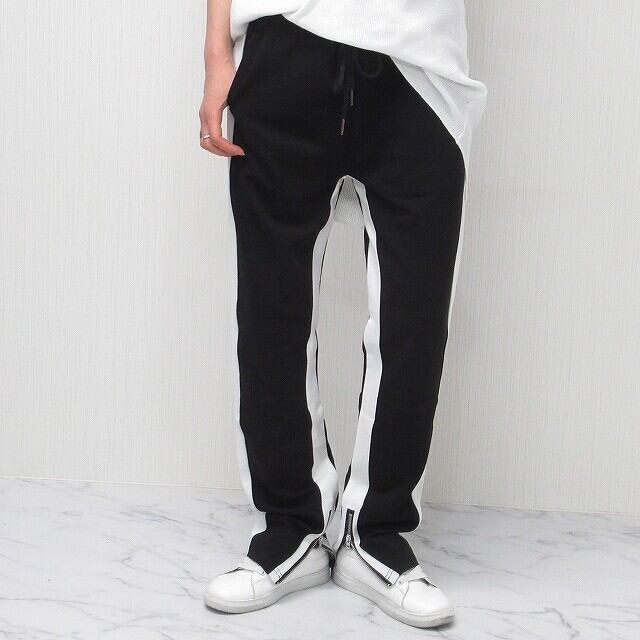 裾ZIP開閉OK バイカラー Sideライン トリコットパンツ BOYSパンツ ブラック