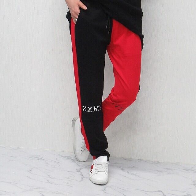 バイカラー 配色切替 ロゴ トリコットパンツ BOYSパンツ レッド