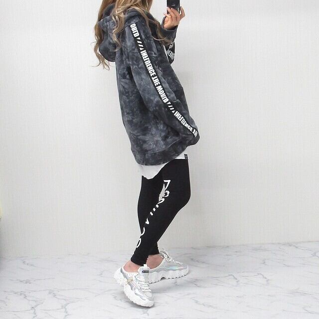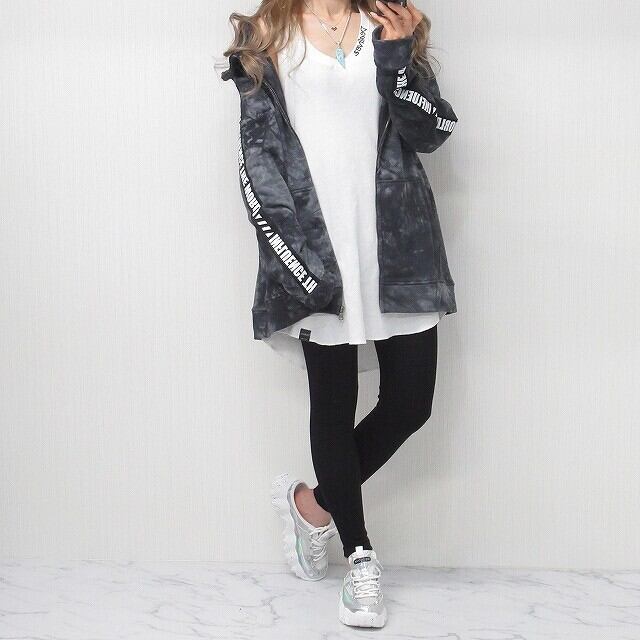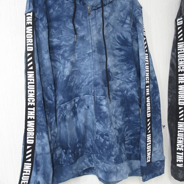 タイダイ ムラ染め 袖テープロゴ ZIP パーカー ブラック